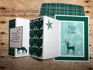 Here is a picture of the same card using the Wrapped in Plaid 6 x 6 carfd pack in the new catalogue. I used the Dashing Deer stamp set and So Many Stars stamp set from the Holiday cattie for that adorable star. The square was embellished with Holdiay sequins – yep, from the Holiday cattie! Fun, right?