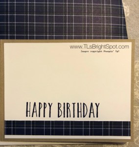 What a great last two days of stamping and creating! Yesterday it was eye pillows for our daughter who is teaching a class about Essential Oils (Young Living to be exact). I made 7 and they turned out so cute :o) Sorry – no picture of those. Today it was making a birthday card for my brother-in-law and I used some new paper from the Mini Catalogue – whee! The paper is from the Clubhouse Suite… this Designer Series Paper is called Country Club DSP and is very masculine – golf themed on one side, plaids and argyle on the other. Here’s the card I created:
