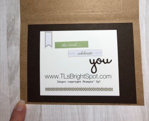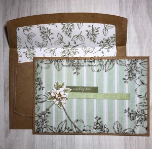 - Whisper White cardstock behind the printed vellum, Early Espresso behind the ‘card’ and placed on dimensionals.