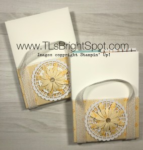 Hi Folks – Monday – oh it’s Monday… And two more card kits prepared for the mail. Here’s the packaging, which I wanted to share ‘cuz I think they are cute. What’s fun about the packaging is that each one has looked so very different while still using the same products… acetate card boxes, DSP, ribbon, pearlized doilies and further decorations. Depending on the DSP used sort of determines what you create for the decorations.