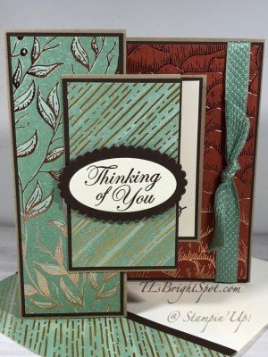Is that fun or what? And beautiful? SU! has done it again with their gorgeous coordinating papers. These papers come from the Guilded Autumn Specialty DSP pack in the August ~ December 2020 Mini Catalog. If you want to know how to get your pack of these papers, contact me and we’ll connect!