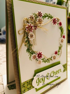 - Stamp the sentiment on a Whisper White panel with Melon Mambo ink. The sentiment comes from Festive Corners stamp set (an awesome versatile stamp set I might add!)