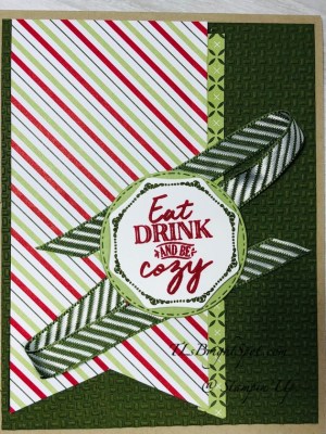 What a pretty, cozy card! The DSPs are great and that sentiment! One days, we’ll be in the same spot together again with 1000 of our SU friends and we’ll eat, drink and GET COZY!!