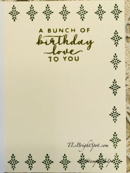 On the inside I stamped this cute leaf stamp along three sides with Garden Green ink then stamped the birthday greeting from Boho Indigo stamp set in Pear Pizzazz.