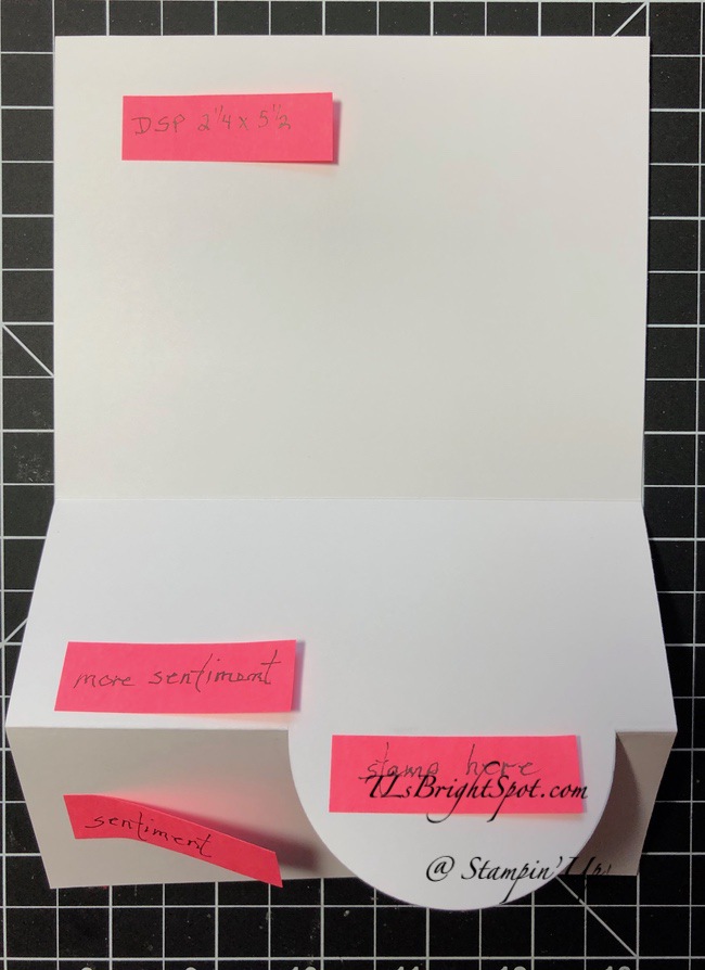 Today’s card is one I am using in a class for today. Folks will be learning tips & tricks to create SIX fun folds. They won’t be fully creating all of them, not in two hours, but they will do the folds and adhering card stock & DSP then adding sticky notes so they can finish them at home. This particular group wanted a firehose version. We’ll see how it goes – it’s a LOT in that short a time!