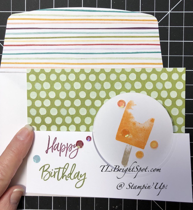 For the envelope I added more of the Ice Cream Corner DSP and the card was done – voila!