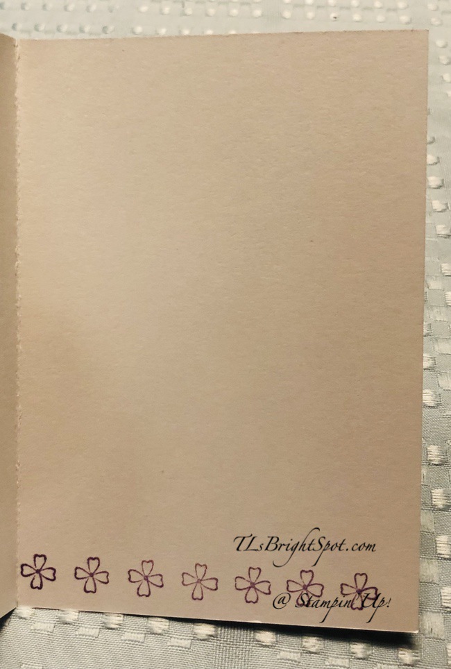 For the inside I stamped this sweet floral image on the bottom of the card in Polished Pink ink and for the card on the right, Fresh Freesia ink – and the note card was complete.