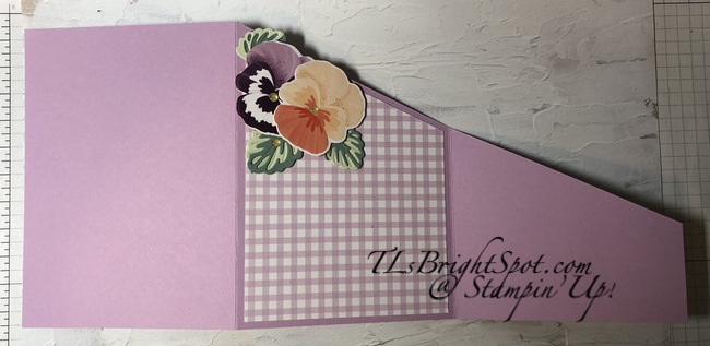 - On panel 2, (gingham side) the leaves are adhered directly to the card and the pansies are on dimensionals.