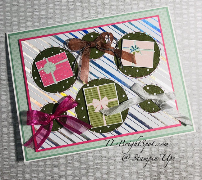 What a Bright and cheerful card! 😉 I love the bows and packages. So creative to turn those cirlces over and use them like that! TFS