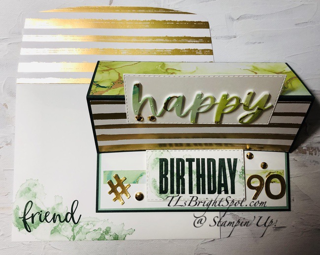 Hello to Saturday! It’s the weekend and I hope you have some fun plans included in your day. Hubby & I got our Moderna booster yesterday and so far, no side effects. A bit of a sore arm, but that’s common with just about any injection. My card for today is for a friend of ours turning 90! He still drives to work. Yes, I did say work. He thrives on people and has a very sharp mind.