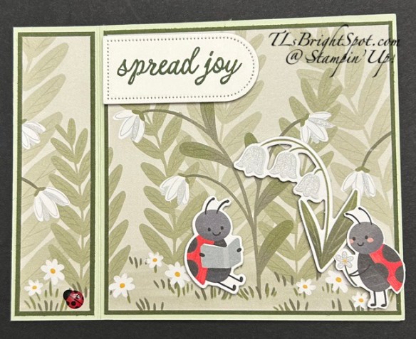Yesterday I created an interlocking z-fold with this suite. Today, it’s a bookfold using one of the pages of images that has scenes in 3 x 4 or 4 x 6 size. Let’s check it out. I’m calling this panel, lilies of the valley – and it’s sweet. I die cut another of the flowers … Continue reading - Stampin’ Up! Sweet Bugs Pop Up Fun Fold for the Happy Inkin’ Thursday Blog Hop