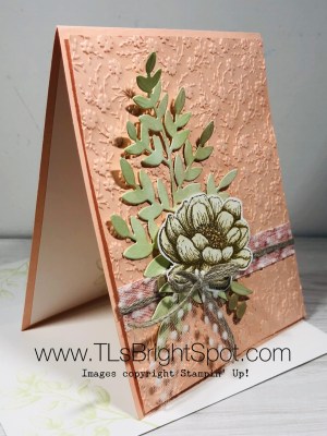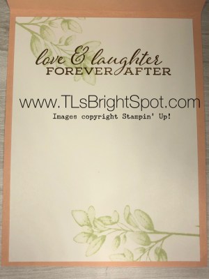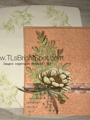This would make a fabulous wedding or anniversary card! So what do you think? This stamp set – Forever Fern with matching dies, Forever Flourishing Dies, are must haves for this next year. Matter of fact, I just might wear them out from use!!! And Tasteful Touches is another equally beautiful set, They coordinate so well together. I love how Stampin’ Up! does that.