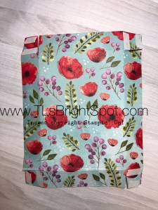 - cut a 1 x 12 strip of coordinating DSP. I used World of Good SDSP. Wrap around entire box. Since this is about 1/2″ short of reaching around the box, adds a strip of Thick Whisper White to pull ends together on the backside and on top. See photo…