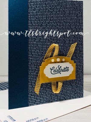 Stamp the sentiment on a piece of Daffodil Delight with Memento Black ink, then die cut it with the Banner Blooms Dies. It will need trimming down to size as this is an ‘all in one die’! (There’s a picture later…I wanted the banner to be raised in the middle so once I did the die cut (from the Banner Blooms Dies), I doubled the dimensionals in the center and took my bone folder and gently rolled the paper. The banner tips curl up nicely. I also added a glue dot just before the banner curls up at the end. Last but definitely not least, were the Rhinestone Basic Jewels. They added just the right sparkle to this card!
