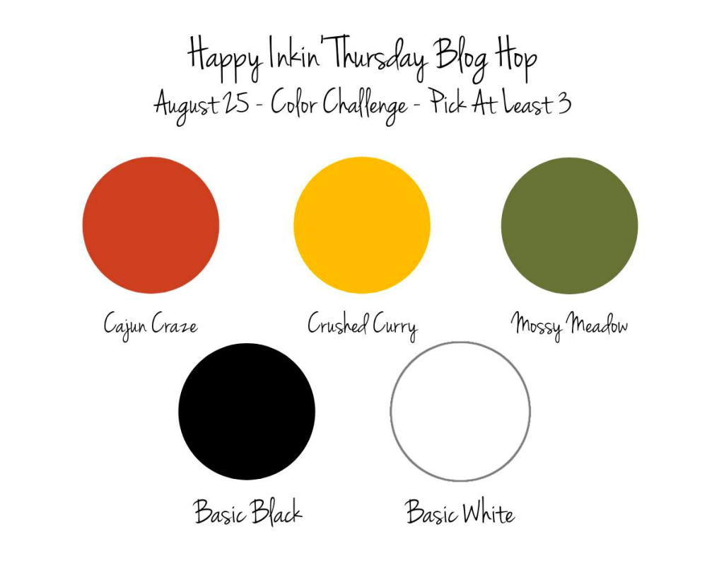 Hello!!! And welcome to the Happy Inkin’ Thursday Blog Hop. We have a color challenge today that just seems perfect for a fall card. Here’s what i created for it…
