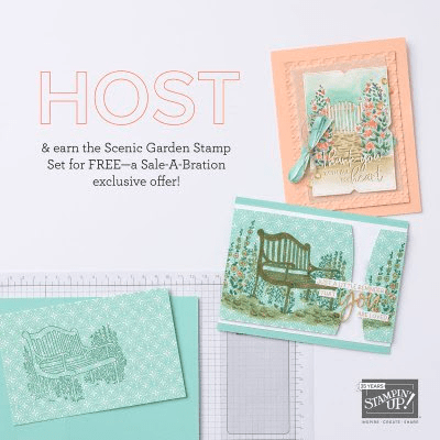 There is a new host exclusive stamp set called Scenic Garden that will be available for FREE with either a personal order of $300+ or a party with sales totaling $300+!
