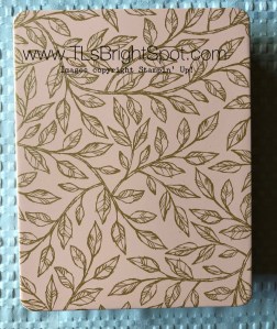 Here you can see the inside of the 3 x 3 card… I had trimmed the stamped sentiment into segments, and fussy cut them. This is adhered directly to the inside of the 3 x 3 card. The envelope has this very sweet Petal Pink Polka dot from the Zinnia 12×12 DSP.