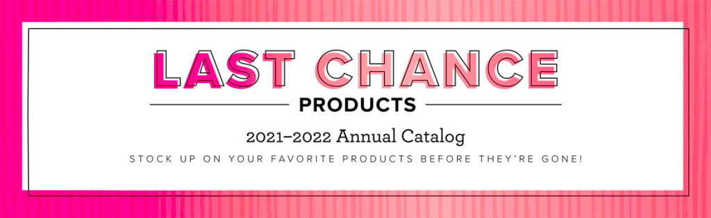 This Last Chance Products promotion includes two lists of Last Chance Products that will no longer be available once the catalog retires. There will be one for each catalog retiring. For these retiring catalogs, there will not be a Carryover List. You can find carryover products in the upcoming Annual Catalog.