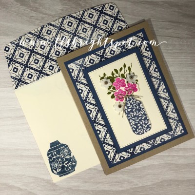 This card has a lot of white space and I’m not used to making cards like this, but I like it ~ it’s simple and elegant. For all the products used in today’s card and more information about current happenings in Stampin’ Up!, scroll down below the names :O)