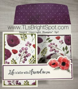 - The inside panel was stamped using the Peaceful Poppies stamp set – NOT RETIRING!