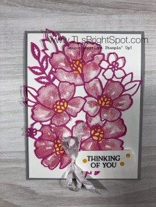 Now, just a word about Calming Camellia – this is a hostess stamp set – so a $300 purchase is necessary to get it for FREE! The Marbelized 6×6 DSP is also FREE during Sale-a-bration. So… hint, hint. Get your buddies together to have an order valued to $300 so you too can get this set! For more info, see the ordering info below.