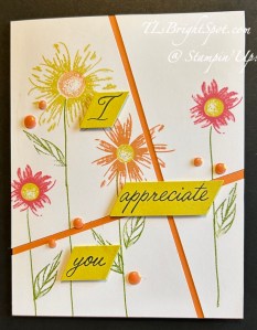 - Stamp the small flower w/ leaves from the Charming Day stamp set – stamping twice in Memento ink.