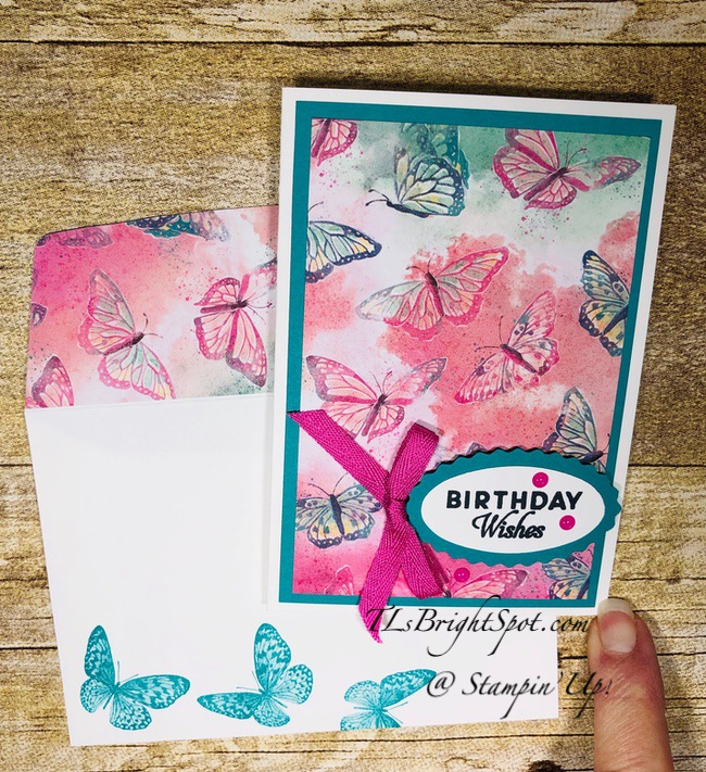 - Adhere a panel of 2019-2021 In Color 6×6 DSP to the envelope flap, trim and the card is DONE!