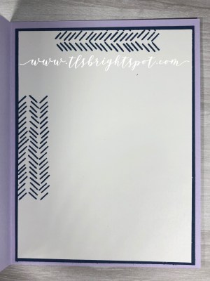 The inside was super easy ~ Misty Moonlight 4 x 5 1/4; Whisper White 3 7/8 x 5 1/8. Stamp the Whisper White with Misty Moonlight and adhere to Misty Moonlight then to the inside of the card. Voila! Your card is ready…