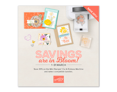 Beginning 1 March and through 31 March, Stampin’ Up! has a promotion that is hard to pass. See below for details. This is such a sweet deal and the bundles available are extraordinarily priced.