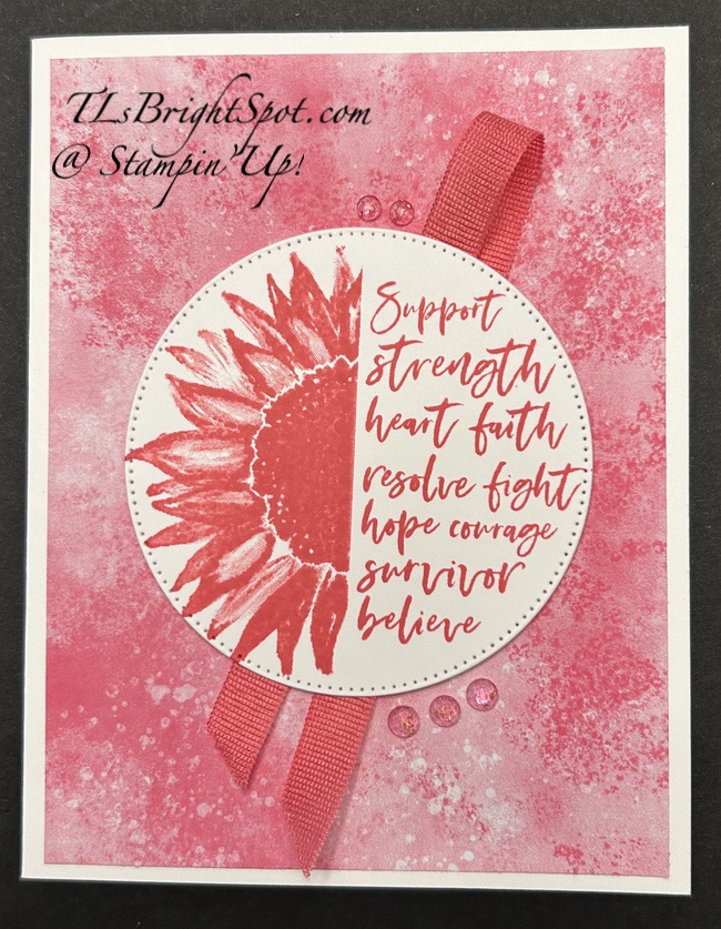 For the envelope… another stamped image in Memento ink Simply Beautiful stamp set & colored with Stampin’ Blends Petal Pink & Old Olive. The flap has the same Fresh Freesia Lovely & Beautiful SDSP trimmed to fit. For information about shopping with me or joining my team, see below.