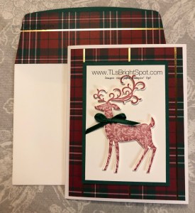Hi Everyone, It’s been a couple of days since I posted and I wanted to touch base again. Today’s card is simple and elegant and was our project for class Monday night. Each person’s was a bit different as the various patterns of Wrapped In Plaid DSP made it distinctive.