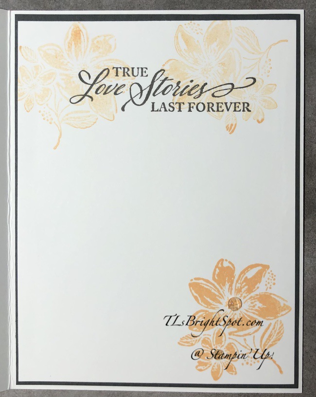 For the inside I added a 1/2″ wide strip of the same 2021-2023 6×6 In Color DSP to a Basic White panel and adhered it to the inside of the card – no additional sentiment or stamping – and no photo either 😦 What was I thinking!!! For the envelope I added a panel of the 2021-2023 6×6 In Colore DSP in Soft Succulent to the envelope flap and voila! Card cuts are listed at the bottom of this post.