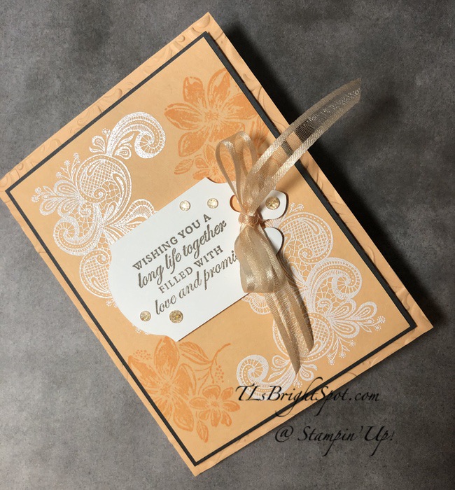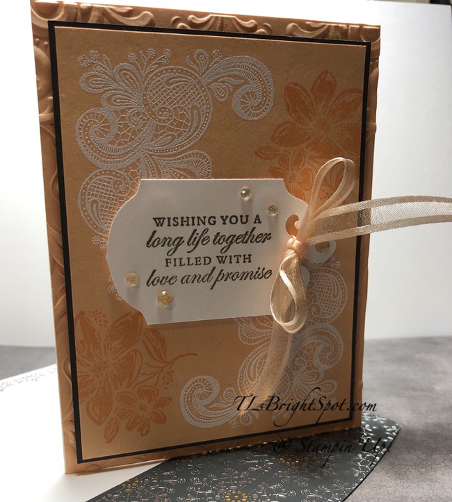 Today’s card uses the Elegantly Said bundle, Penned Flowers Dies and the Tasteful Textile 3D Embossing Folder plus a few other elements. It incorporates two of the new In Colors ~ Pale Papaya & Soft Succulent which compliment each other nicely.