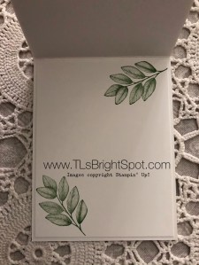 The card on left is stamped in Pretty Peacock: the sentiment from Path of Petals stamp set, leaves from the Forever Fern stamp set. The card at right uses the stamps from Touched My Heart stamp set stamped in Pretty Peacock ink and the leaves stamped in Soft Sea Foam ink.