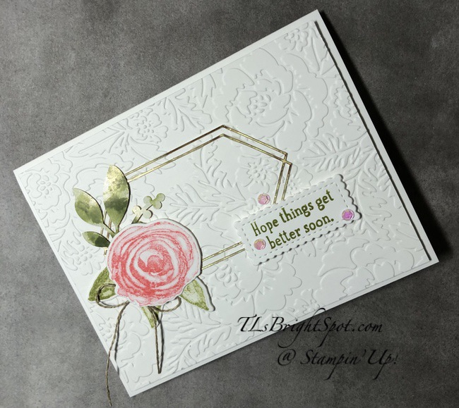 Each of the products used in the card (except Memento ink & Basic White card stock) is retiring as of May 1 and is on the LAST CHANCE PRODUCT list. The Country Gingham 6×6 DSP is on the Jan-April 2023 Mini Catalog list. More info about that below!