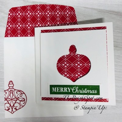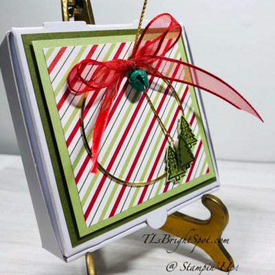Hi Everyone! One day last week I covered a Mini Pizza Box and didn’t share it as I hadn’t created cards for the inside yet – so yesterday I got busy and did just that. I pulled out some fun carryover punches: Mr Moose (which I adore!), the Pine Tree Punch and Gleaming Ornaments Punch Pack. Because these are small cards (3 x 6 scored at 3), I used only the smaller of the Gleaming Ornaments punches. Let’s take a look…