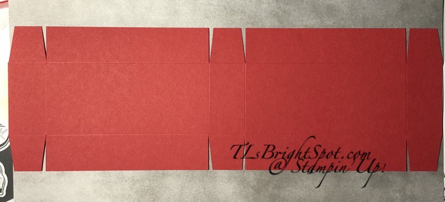 Trim as shown in photo, add Stampin Seal on small trimmed pieces, fold together adhering. Lid folds over the top.
