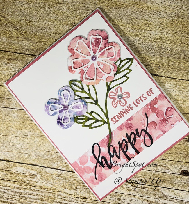 Today’s card features the lovely and one of my favorite bundles in the Mini Catalog – Pretty Perennials – and it is retiring. While Stampin’ Up! has not released the retiring list from the Mini Catalog, as a demonstrator we get a preview of the new cattie – and this bundle is not in it! I have kept this card very, very simple and almost monochromatic. I definitely have an affinity for monochromatic cards… I may have to add a rhinestone to this, but for now…
