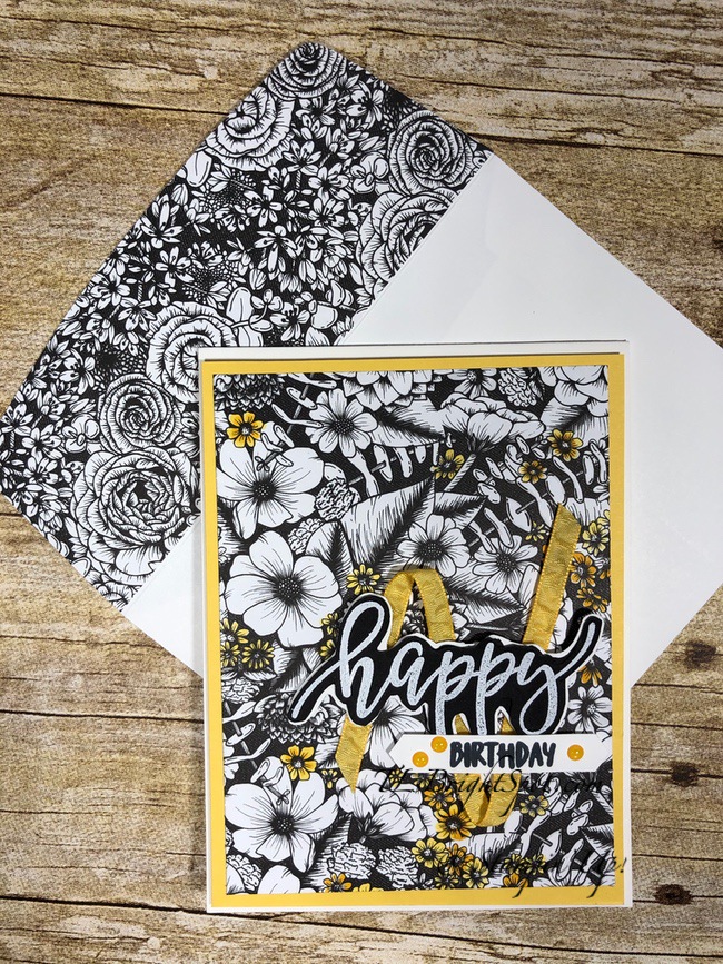For the inside… I stamped the word birthday in Magenta Madness ink on another Basic White panel, then added more parts of the die cuts from the Perennial Petals Dies with liquid glue. I adhered this to a panel of 2020-2022 In Color 6×6 DSP and into the inside of the card and voila!