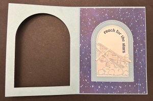 Close the card front and add arch to the ‘star’ covered panel, centering with the card front arch.
