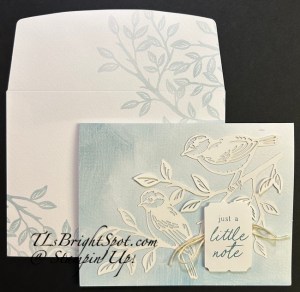 For the envelope… more of the Lovely & Beautiful SDSP was adhered to the flap & trimmed to fit. On the front is this leaf, stamped in Old Olive ink using the Beautifully Celebrated stamp set. While this is very springy in color, I’m using this as a birthday card for my friends birthday in December – something non traditional ‘Decemberish’ 😀 For information on how to get the new Jan-Apr 2026 Mini Catalog, see below. Also see below for other information about joining & purchasing products through my online store.