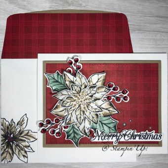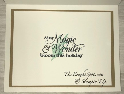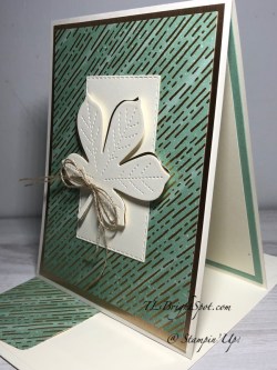 For the final touches, I added 3 Elegant Faceted Gems to each of the two end panels and covered the leaves with Wink of Stella. I also covered the small leaf on the sentiment panel with Wink of Stella. It doesn’t show in the photos, but it adds a lot to the completed card.